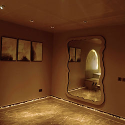 Design: Outer space-inspired with moon-shaped arcs Rocky stage-style flooring for a dramatic feel Spiral staircase designed for aesthetics and impact. Signature Features: Our largest content room with cinematic lighting Futuristic curves and structured shadows Clean neutral tones for color flexibility Private glam dressing room with vanity lighting. Best For: Cinematic visuals, creative sessions, and live recordings Conceptual events, wedding shoots or a romantic dining experience. Anyone seeking an atmospheric and futuristic space.